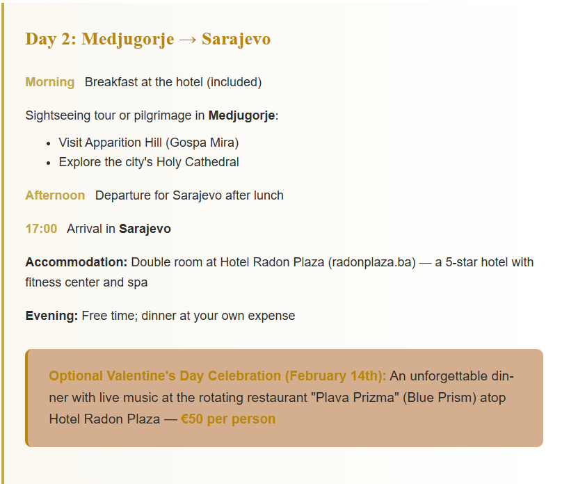 Experience a transformative journey through spirituality, history, and vibrant culture across three of Bosnia and Herzegovina's most captivating destinations:
