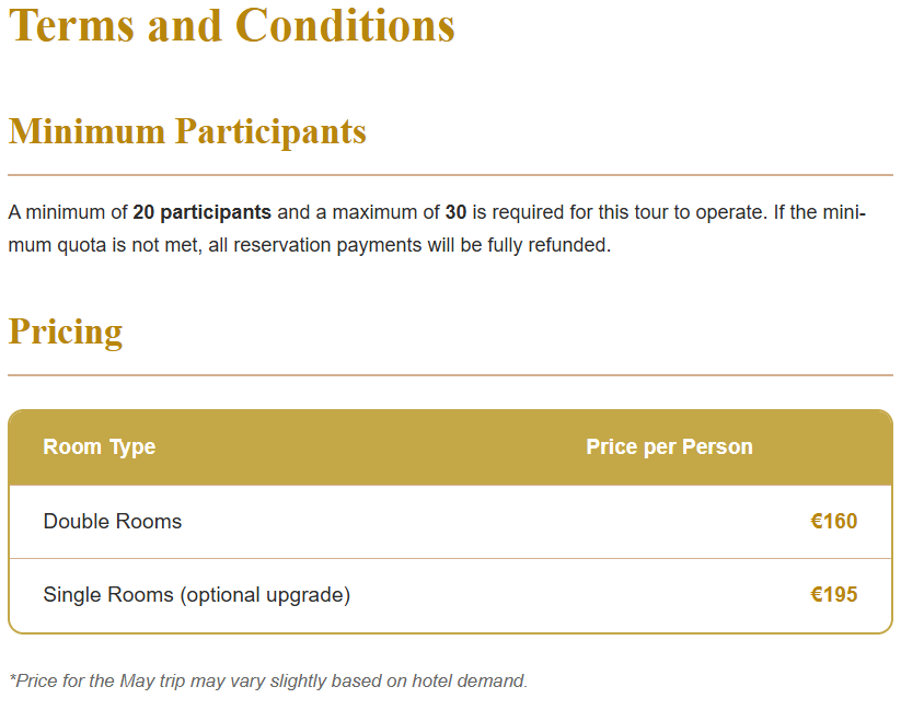 Terms and conditions apply on each tour, including minimal amount of passengers required.